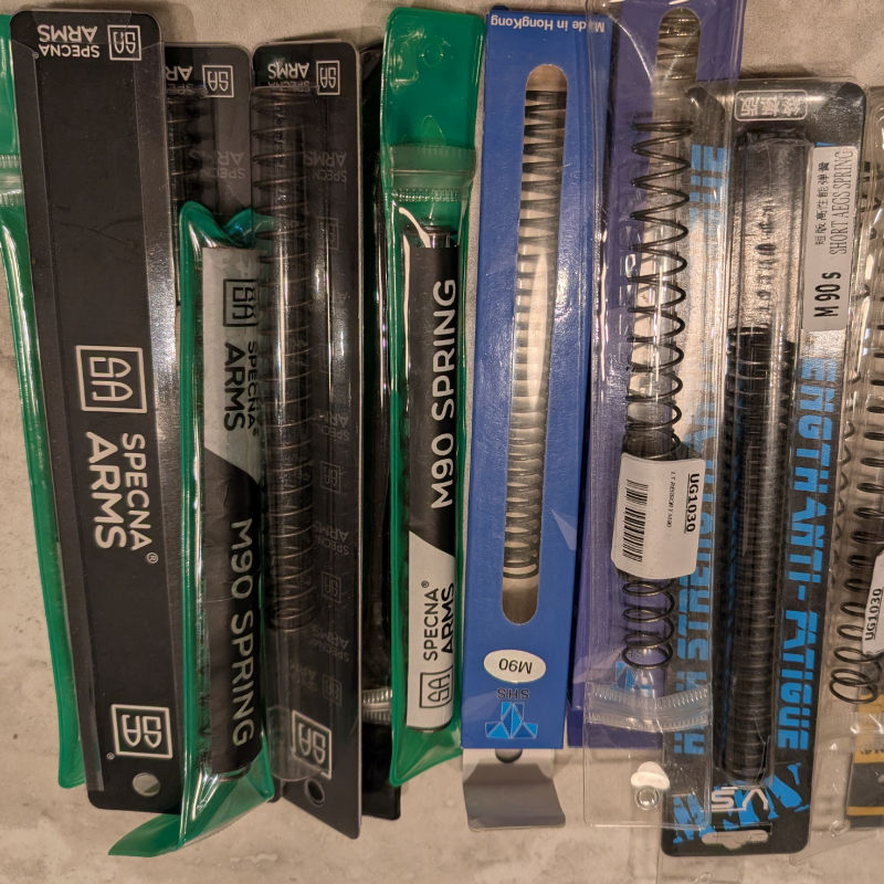 Reliable M90-rated springs for AEG builds, sourced from multiple trusted brands. Ideal for moderate FPS setups and smooth cycling performance.
