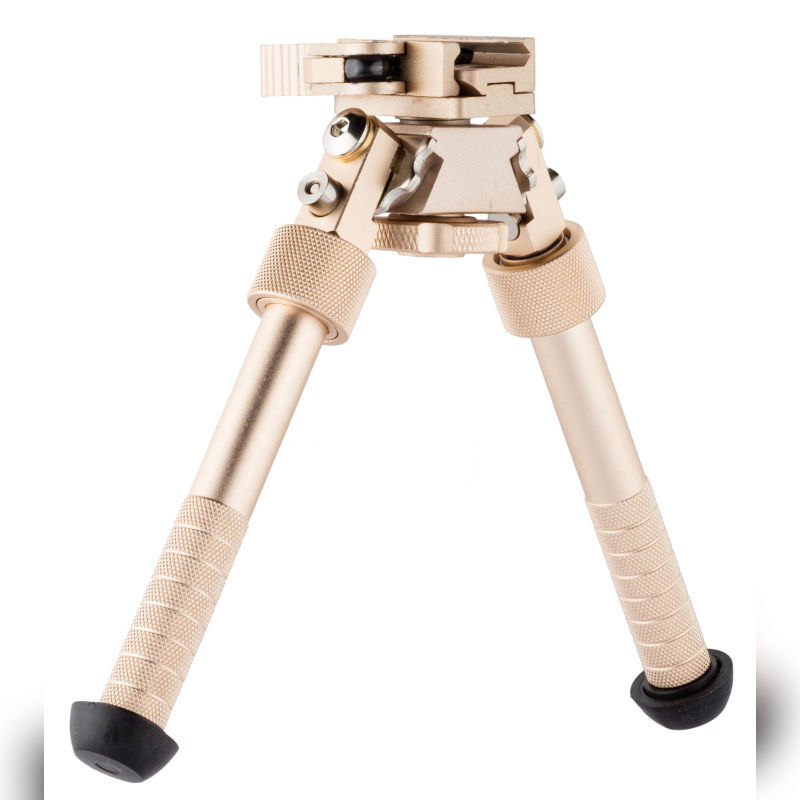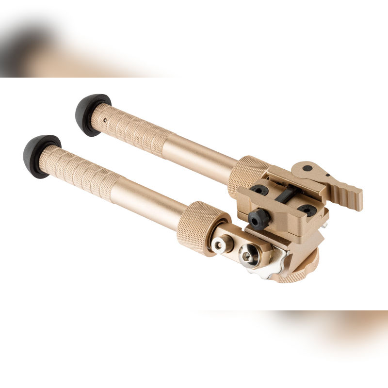 A high-end bipod designed for stable positioning and quick deployment. Its bronze finish and rubberized feet offer both style and grip, while the compact design ensures easy handling.