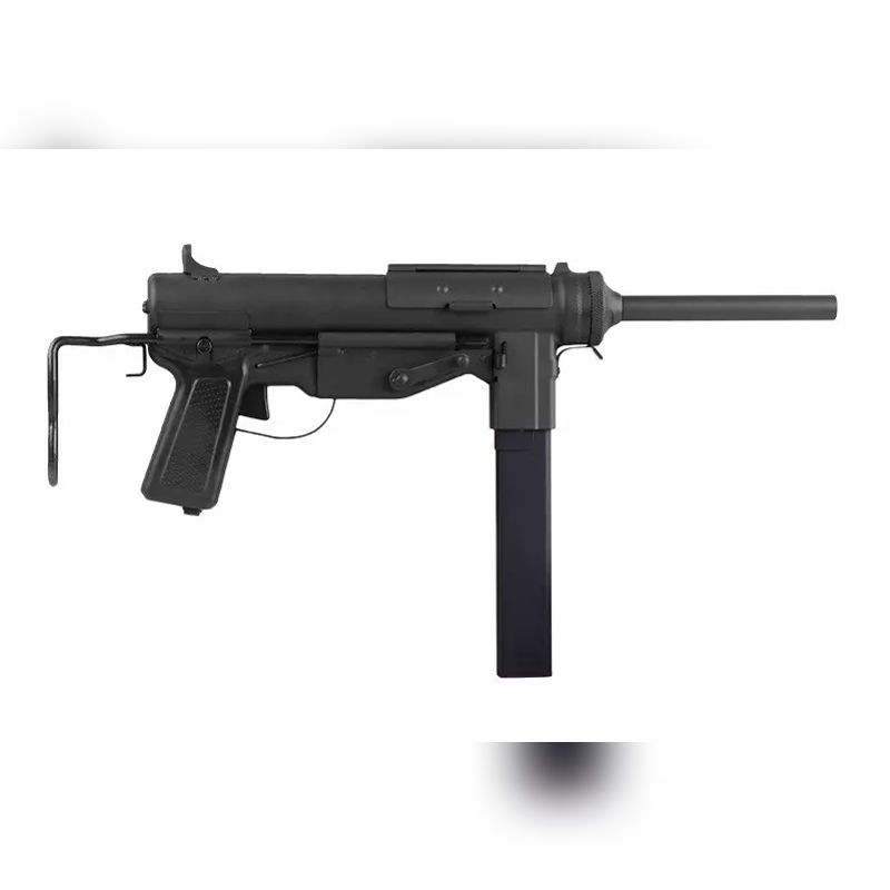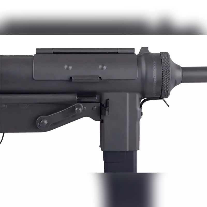 The airsoft replica is based on the M3 Submachine Gun, introduced by the U.S. Army in 1942 as a cheaper, simpler alternative to the Thompson.